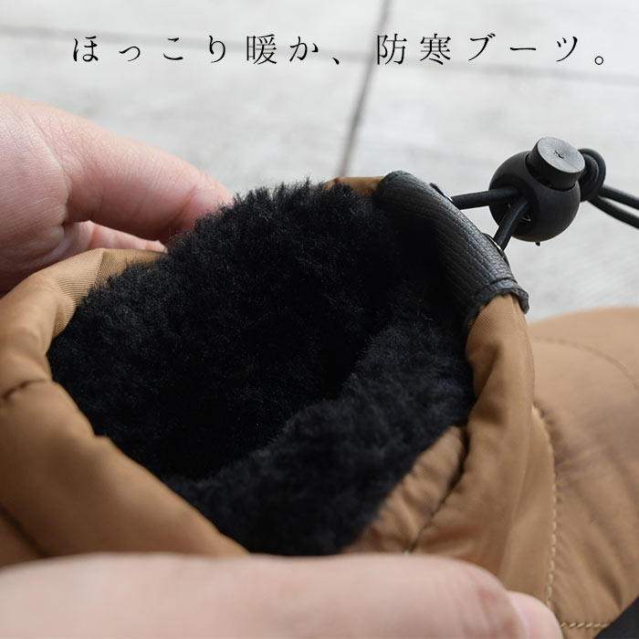 表地は撥水加工のある生地、内側はふかふかのボア仕様でほっこり暖か。