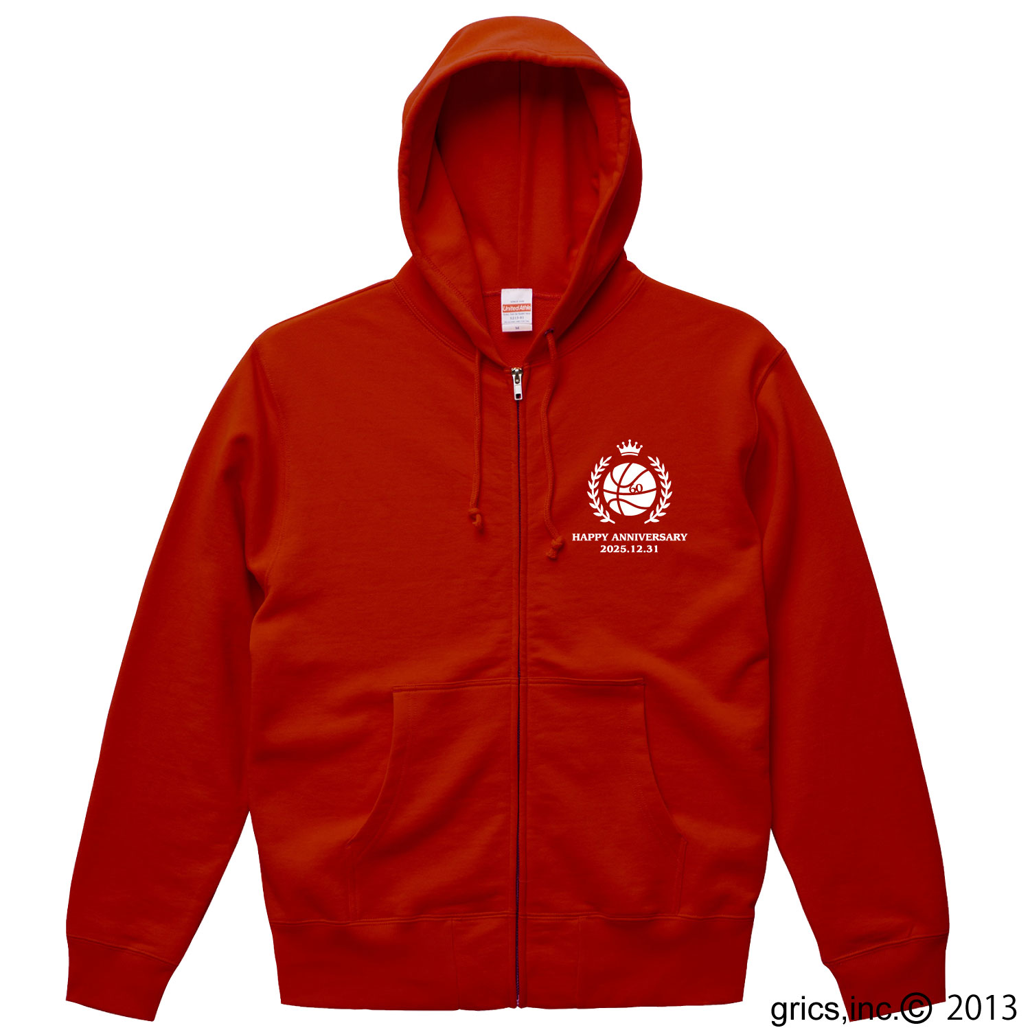 大切な方のお名前と記念日をデザインインしてカスタムオーダー!世界で1枚のオリジナルパーカ!! この商品の良いところ=ポイントは、 ズバリ シンプル スタイリッシュ しっかり感 『シンプル』 シルエットはオーソドックス×デザインがシンプル! 『スタイリッシュ』 「HAPPY ANNIVERSARY」お祝いメッセージと生年のおしゃれデザイン! 『しっかり感』 生地の厚み感、フードとボディの織の良さ、丈夫で上質です! ▲前面左胸に王冠とボールのイラストに「生年月日」のデザイン。